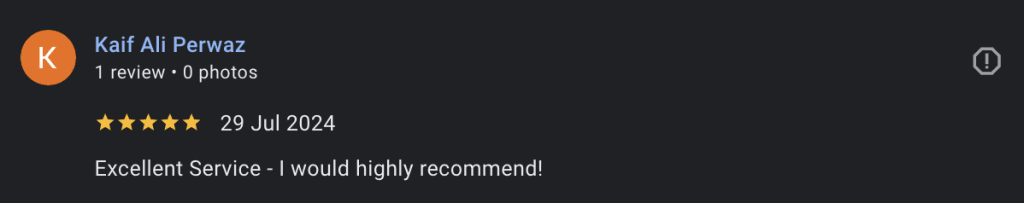 Excellent Service – I would highly recommend!