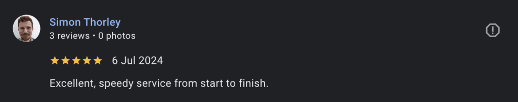 Excellent, speedy service from start to finish.
